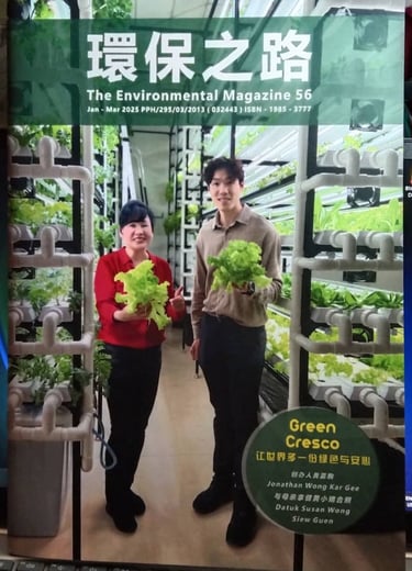 This special issue shines a spotlight on Jonathan Wong Kar Gee, the visionary founder of Green Cresco, through a heartfelt cover story titled “Bringing More Health, Heart, and Hope to the World.” Green Cresco is a pioneer in indoor smart hydroponics, an innovative system that promotes safer, cleaner, and more sustainable food cultivation. Supported by Datuk Susan Wong Siew Guen, the initiative embodies a strong commitment to advancing a safety-first and health-driven sustainability movement, empowering communities to adopt smart, eco-friendly solutions in food production.